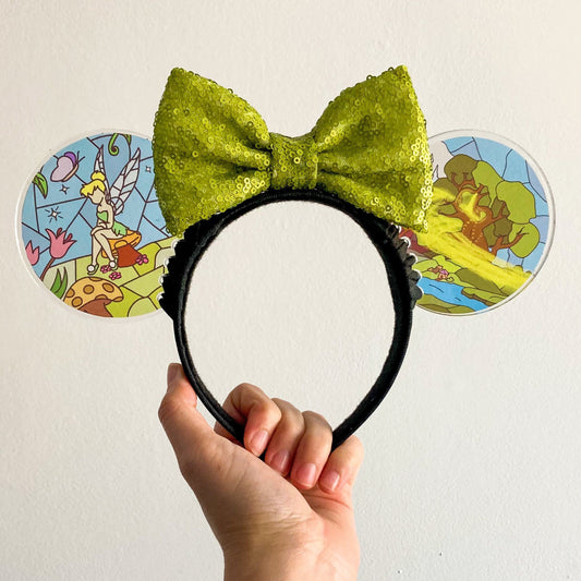 Tinkerbell Stained Glass Mouse Ears, Disney park Fairies inspired Resin Headband